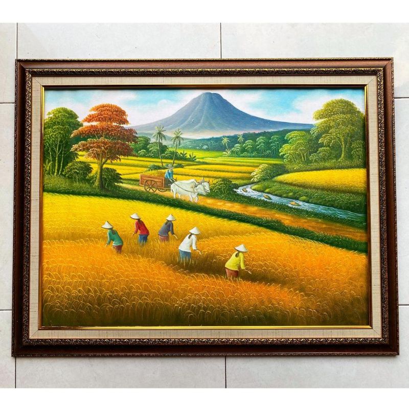 Jual lukisan pemandangan panen padi sawah yang sangat indah kab tabanan juragan lukisan tokopedia.